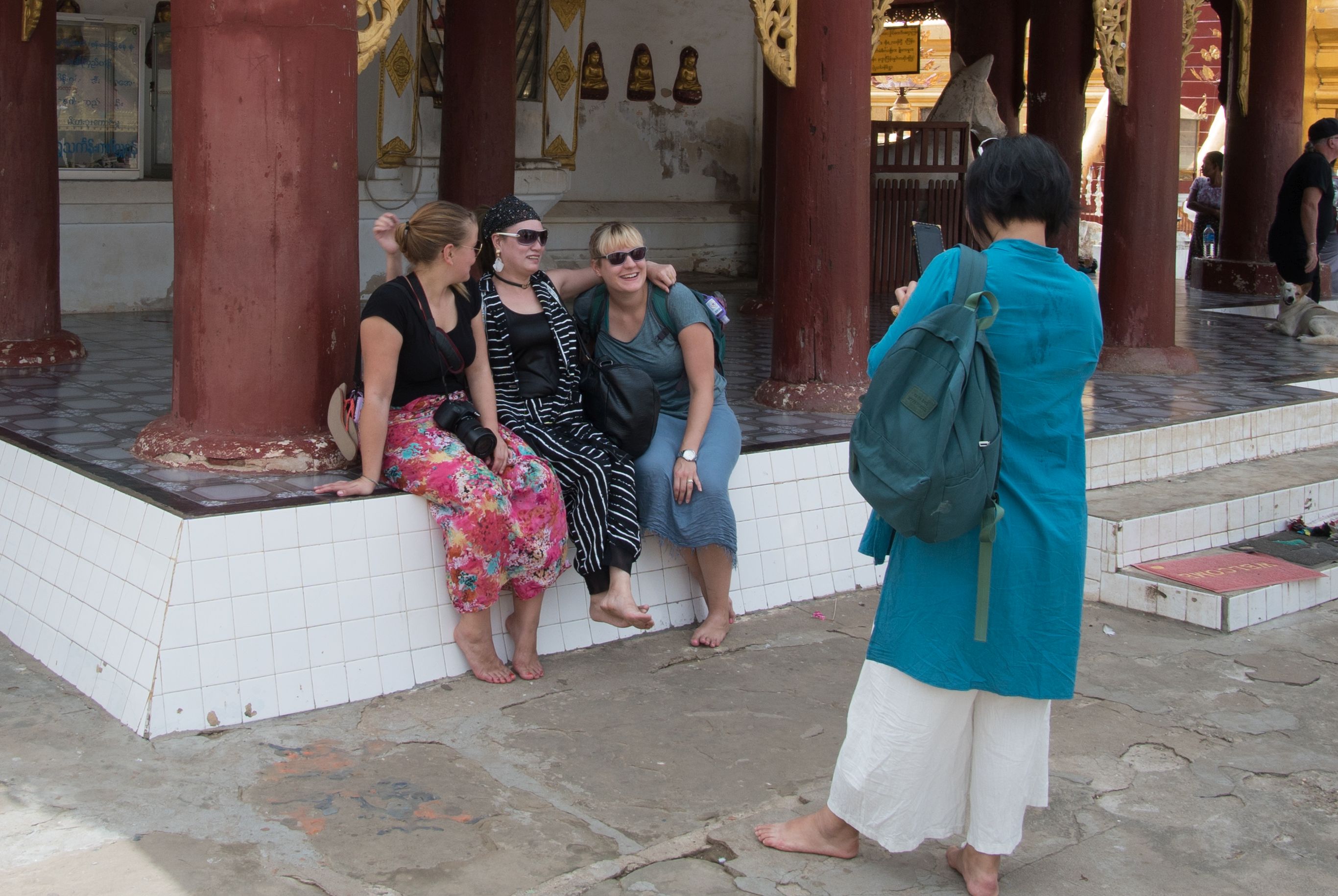 Das Inwa Motel, etwas außerhalb der archäologischen Stätten in Nyaung U, sollte unsere Homebase für die nächsten Tage werden. Zimmer, Frühstück, Taxi- und Tuk-Tuk-Service - alles klappte hier wunderbar. Da kann man auch mal darüber hinwegsehen, dass die Angestellten hin und wieder auf dem Boden der Lobby liegen und einfach vor sich hin ratzen. Anscheinend gilt der Eingangsbereich als Wohnplatz für die Hälfte der Mitarbeiter. Da uns wieder einmal der Nachtbus am Zielort ablieferte wurde Tag eins erst einmal etwas entspannter angegangen. Ein Besuch der Shwezigon-Pagode blieb bis zum Mittagessen unsere einzig sinnvolle Beschäftigung.