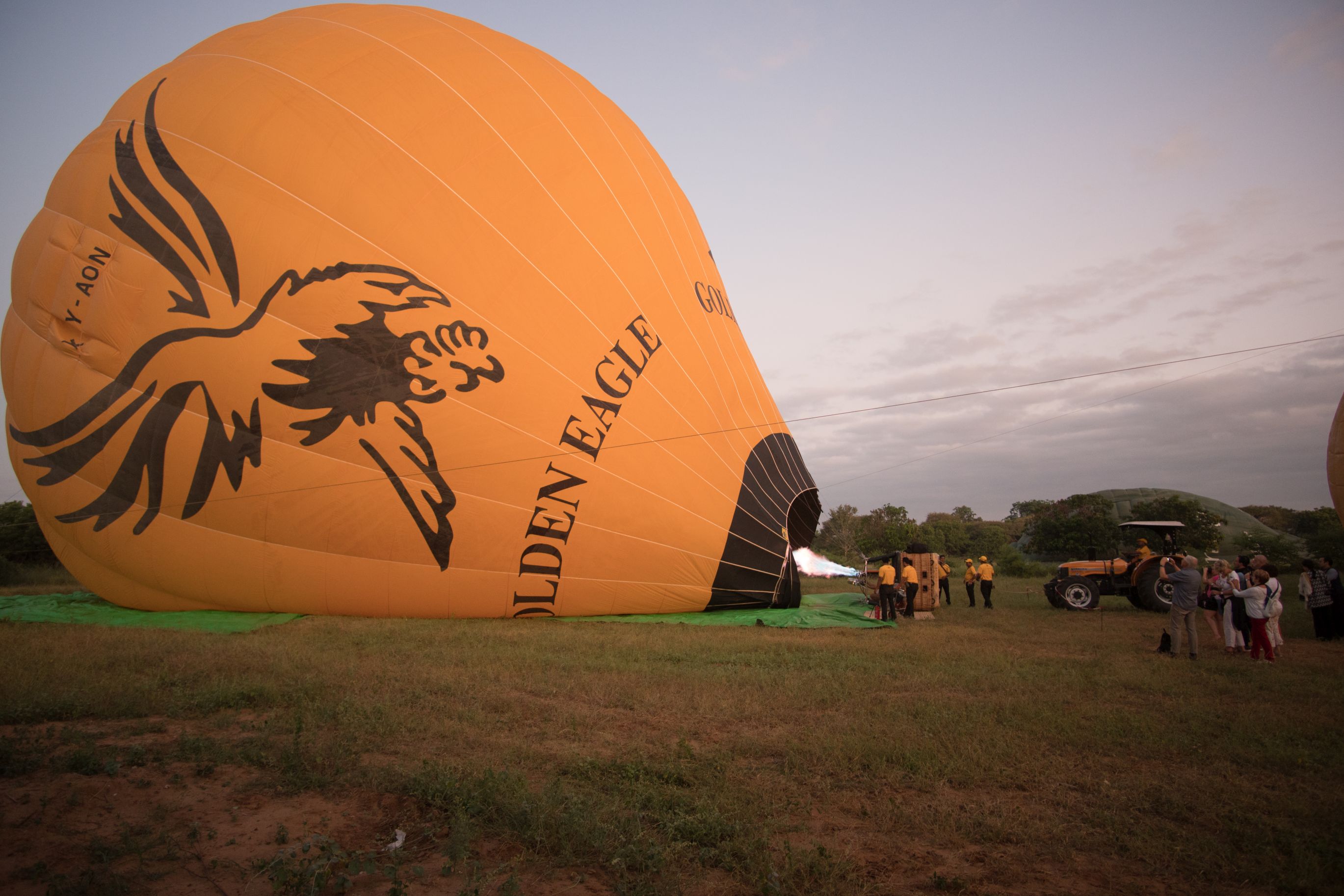 Eine kurze Nacht stand uns bevor: Gegen halb fünf wurden wir von der Crew von "Golden Eagle Ballooning" abgeholt und auf einem riesigen Acker am Rand der Stadt abgeladen. Alex und Betty hatten sich einen Platz in einem Heißluftballon gesichert und durften erstmal an liebevoll gedeckten Tischen einen kleinen Morgensnack zu sich nehmen. Eva und ich entschieden uns schon sehr zeitig dazu das Abenteuer Ballonflug vorerst auszulassen. Als Langzeitreisender muss man sich hin und wieder an die eigene Geldbörse fassen und auch mal verzichten können. Trotzdem waren wir froh, dass sich unsere beiden Besuchsweltreisenden auf dieses Wagnis eingelassen haben. Während des kurzen Frühstücks stellte sich jeder Pilot seinen Gästen vor. Die zumeist aus Australien stammenden Heißluftballonführer (wir bleiben bei Piloten) sind wahre Entertainer. Wahrscheinlich haben sie schon tausendmal dieselben Geschichten und Witze erzählt und trotzdem schaffen sie es ihre Gäste in den Bann zu ziehen.